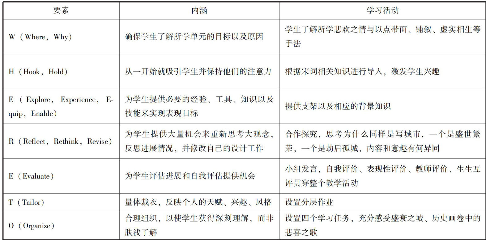 [摘要]新课程标准强调“教—学—评”一致性,培养学生核心素养,细化教学评价建议,对学业质量提出了进一步要求。为了实现“教—学—评”一致性,全面提升学生的学科核心素养,以统编版高中语文选择性必修下册教材第一单元第四课《望海潮》《扬州慢·淮左名都》为例,借助UbD理论进行科学、合理、高效的教学设计,以落实“教—学—评”一致性,促进学生核心素养发展。