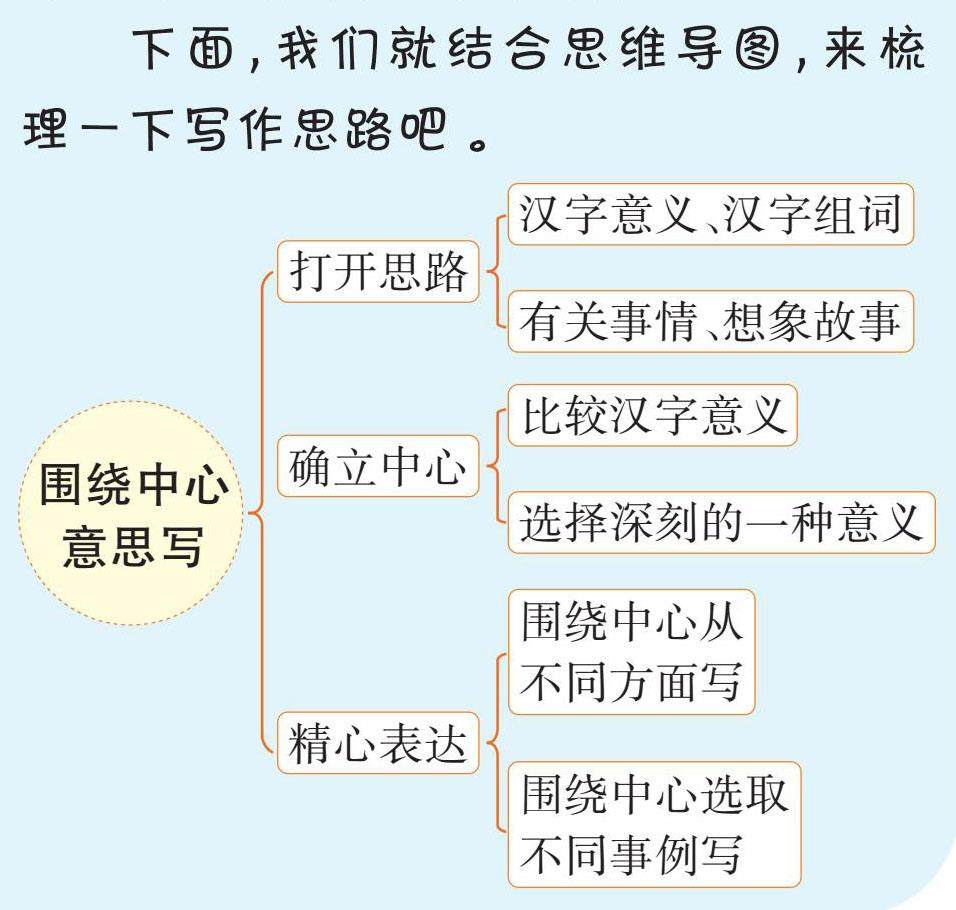 我国的每个汉字都有着丰富的文化内涵。今天,我们就来选择一个汉字写一篇习作吧。那么,该如何写呢?我们可以从以下方面入手—— 一、打开思路。看到一个汉字,我们马上就可以想到汉字的意义,想到由这个汉字组成的词语,想到与这个汉字或词语有关的事情,还可以由这个汉字想象故事,由此打开思路。比如汉字“变”,我们可以结合现实,反映新时代农村的面貌发生了巨大变化;也可以通过前后对比,反映故事主人公的品质发生了变化