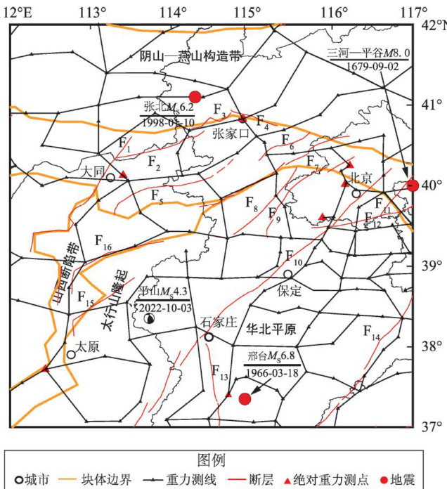 摘要:搜集整理了2019—2022年晋冀蒙交界地区的4期流动重力观测资料,对其进行经典平差处理,并分析了重力场差分和累积动态变化特征。利用小波多尺度分解方法对重力变化进行分解,获得了1\~4阶小波细节场,通过对数功率谱分析法估计了其近似场源深度,并讨论了2022年平山 Ms4.3 地震的震前重力异常变化。结果表明: ① 平山 Ms4.3 地震前,震中及周边地区正重力变化持续累积,地震发生在重力上升变化过程中,震中位于重力变化梯度带; ② 3阶和4阶小波细节显示,研究区重力变化可能反映了中、下地壳物质迁移过程。2022 年平山 Ms4.3 地震震中位于重力场变化正负梯度带或正、负重力异常交替出现的四象限中心部位,且震源深度与3阶小波细节反映的场源深度较一致,这可能反映了震前重力场异常变化特征; ③ 利用小波分解对重力变化数据进行异常场源分离提取和分析,能够清晰地揭示重力场异常变化与地震的关系,对发震地点的预测有一定指示意义。