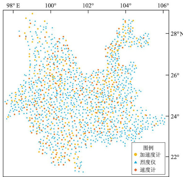 摘要:利用云南地震台网布设的1728个台站 72h 的垂直分量连续波形记录,应用噪声功率谱法、谱面积占比法,并以最大概率加速度噪声峰值 PGA 、位移噪声峰值 PGD 、速度噪声峰值 PGV 为指标,对台网数据质量进行评估。结果表明:云南地震台网的3类传感器中,速度计的噪声水平最低,能够全频带记录背景噪声;加速度计只能记录到频率大于 0.1Hz 的环境噪声;烈度计的噪声水平最高,无法记录到地脉动,只能记录到仪器自噪声。整个台网的噪声功率谱面积占比率为 5%~50% ,优质台站分布大体均匀。速度计、加速度计和烈度计的 PGA 平均值分别为0.00072、0.0075、 0.2Gal ,PGD的平均值分别为0.007、0.19、 15.6μm ,PGV的平均值分别为0.11、0.75、 40.4μm/s 。