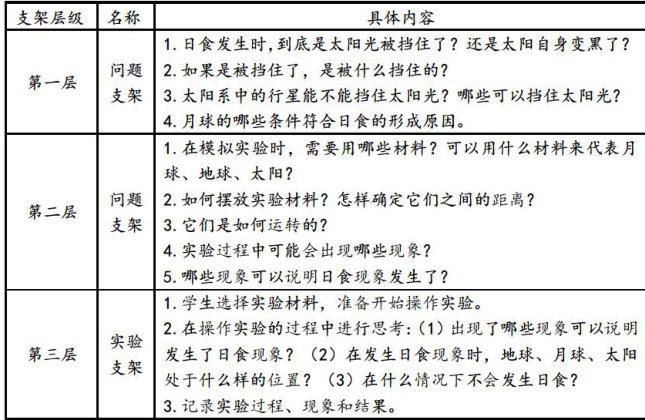 【摘要]科学学科是具有探究性的学科。基于学科特点,支架式教学模式受到广大小学科学教师的重视。运用支架式教学模式实施科学教学,可以让学生亲身经历科学探究过程,增强科学探究能力。本文在论述支架式教学模式内涵和运用价值的基础上,以《日食》这节课为例,沿着支架式教学法的实践过程,论述相关的教学策略,希望推动科学教学发展、学生发展。