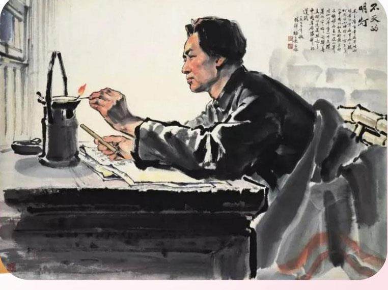 课文《八角楼上》中有一幅插图,画中,毛主席身穿单军衣,坐在竹椅上写文章。他右手握着笔,左手轻轻地拨动灯芯,眼睛凝视着这星星之火陷入沉思。 你知道这幅插图的作者是谁吗?这幅图是怎么来的呢? 这幅插图名为《不灭的明灯》,作者是杨之光、鸥洋。杨之光在八角楼上看到了毛主席当年的工作环境,竟然只有一张竹椅、一条毛毯和一盏油灯,深受触动。于是,他想象着毛主席在那里工作的情景,和妻子鸥洋一起创作了这幅画。