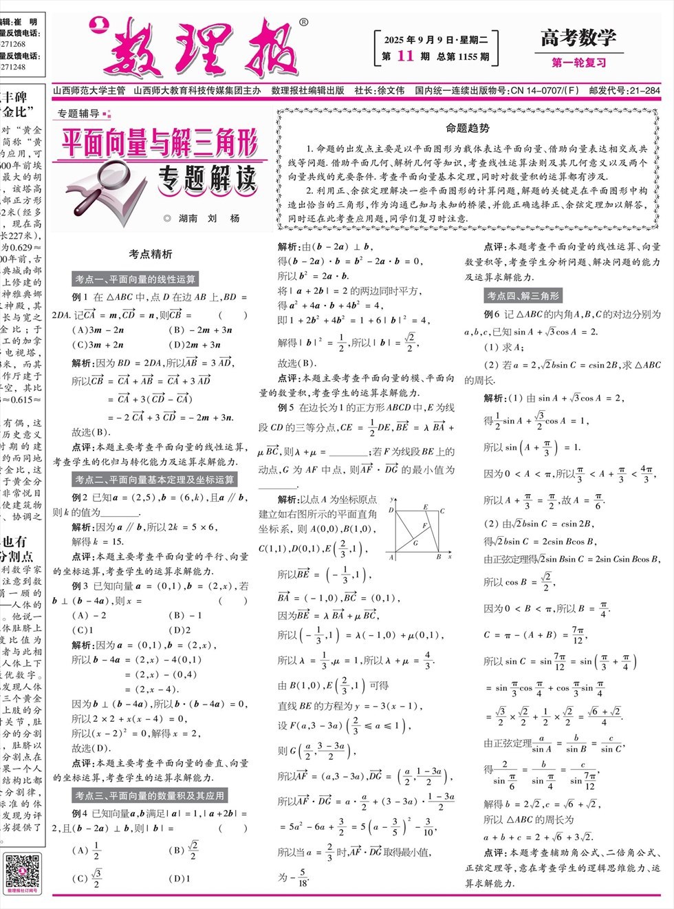 《数理报》是由山西省教育厅主管,山西师范大学主办,面向全国发行的中小学生理科教学辅导类报纸